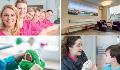 32 Zähne im Glück“ für das Wohl ihrer Patienten. Dabei werden alle Bereiche der Zahnmedizin hausintern abgedeckt, Kinder liegen der Praxis besonders am Herzen – auch Kieferorthopädie wird angeboten.