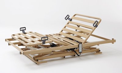 Die vierteilige Liegefläche lässt sich mit Leichtigkeit in die gewünschten Positionen fahren. Rücken- und Oberschenkellehne können elektrisch verstellt werden. Durch die sichere Arbeitslast von 250 Kilogramm eignet sich das Bett auch für schwergewichtige Personen. Torsten Zelck hat bei den Kunden gute Erfahrungen mit dem Einlegerahmen gesammelt: „Man merkt sofort, dass er extra für die Pflege zu Hause entwickelt worden ist.“