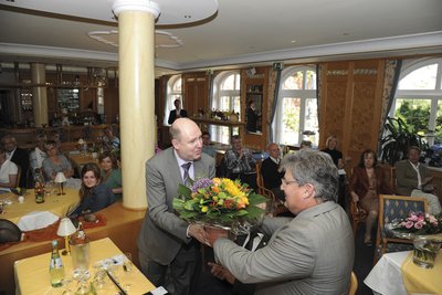 Als Ehrengast wurde unter anderem Dr. Wolfgang Wesiack, Präsident des Berufsverbandes Deutscher Internisten (BDI), begrüßt. Helmecke pflegt als BDI-Landesvorsitzender und Vorstandsmitglied des Bundesverbandes beste Kontakte zur Verbandsspitze.
