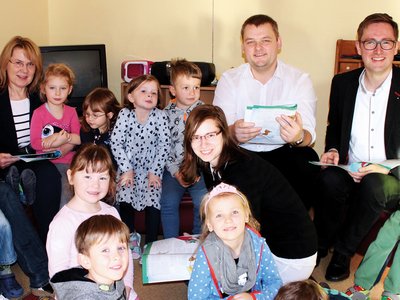 AOK Nordost, der Familien sehr am Herzen liegen, erneut am bundesweiten Vorlesetag im November beteiligte. So trugen der Schweriner Niederlassungsleiter Felix Pankratz und drei seiner Kollegen in der Kita Kinderland aus dem ebenso spannenden wie humorvollen Buch „Henrietta und die Schatzinsel“ vor.