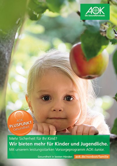 Um den Eltern manche Sorge um ihren Nachwuchs abzunehmen, hat die AOK Nordost gemeinsam mit dem Berufsverband der Kinder- und Jugendärzte (BVKJ) ein spezielles Gesundheitsprogramm für die Jüngsten entwickelt: AOK-Junior.