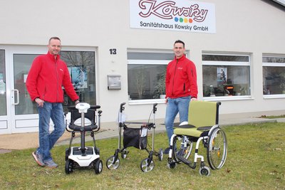 Bei Kowsky ist neben den vielen Mobilitätshilfsmitteln auch Zubehör für Scooter, Rollatoren und Rollstühle zu haben, zum Beispiel Halterungen für Unterarmstützen, Taschen, Klingeln und Beleuchtung. Interessenten können gern zu den üblichen Öffnungszeiten reinschauen, es empfiehlt sich jedoch, einen Termin zu vereinbaren.