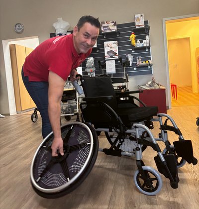 Wie gut „Easy Wheel“ rollt – davon können sich Kunden im Sanitätshaus Kowsky überzeugen. „Gern können Interessierte einen Termin vereinbaren und das System bei uns testen“, sagt Marco Grunenberg. Das gilt natürlich auch für alle anderen angebotenen Modelle. „Easy Wheel“ verfügt zudem über eine Hilfsmittelnummer, so dass eine Übernahme von Kosten bei der Krankenkasse beantragt werden kann.