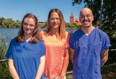 Die Community Health Nurses Laura Jenssen, Anja Jacobs und Eric Lindemann (Foto v. l.) beraten und unterstützen Teilnehmende am Projekt LuP-Regio persönlich bei Gesundheitsfragen. Zusätzlich steht eine Patienten-App zur Verfügung: Termine mit Ärzten und Therapeuten lassen sich dort einfach planen und koordinieren. Es besteht auch die Möglichkeit – bequem von zu Hause – digitale Sprechstunden zu nutzen.