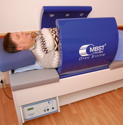 Doch so weit muss es nicht kommen. Frau Dr. Krüger setzt auf eine möglichst frühe Behandlung mit der Kernspin-Resonanz Therapie - seit Januar 2009 mit dem Open System, dem weltweit ersten offenen KernspinResonanz- Therapiegerät. Schonende Behandlung „Die Behandlung, die privat getragen werden muss, ist weder schmerzhaft noch unangenehm“, versichert die Ärztin. „Der Patient liegt bequem in der offenen Spule und kann sich dabei entspannen.“ Bei den meisten bisher behandelten Patienten war die Therapie erfolgreich. Schmerzen wurden gelindert oder beseitigt und die Beweglichkeit verbessert.