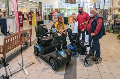 Torsten Zelck sagt: „Auch einige junge Leute schauten vorbei, die wissen wollten, welche Hilfsmittel es für ihre Eltern gibt.“ Viele Besucher nutzten die Gelegenheit, die Mobilitätshilfen zu testen. So wurde gleich mal manche Runde im Center gedreht.