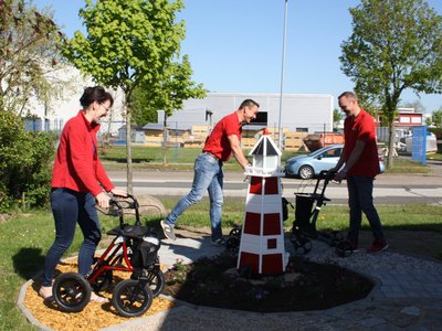 Erfahrene Mitarbeiter wollen am frisch gebauten Rollator-Parcours MS-Kranken, aber auch allen anderen Interessierten Tipps und Tricks vermitteln. Kowsky-Mitarbeiter Torsten Zelck sagt: „Wir haben auf unserem Parcours auch ein paar extreme Bodenbeläge eingesetzt, die zeigen sollen, dass die Reifen nicht alles meistern können. Im Sand bleiben sie nunmal stecken. Als Testfahrzeuge stehen in unserer Filiale fünf ganz unterschiedliche Rollatoren bereit. Natürlich können an diesem Tag vor Ort auch etliche Rollstühle und Scooter auf Herz und Nieren geprüft werden.“