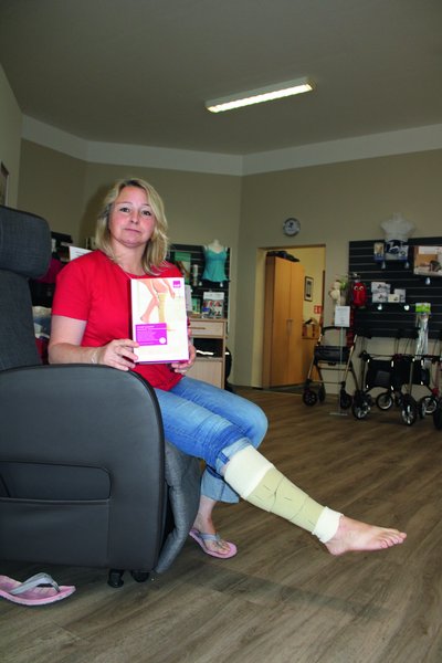 Aus der Packung genommen sieht dieses Hilfsmittel im ersten Moment aus wie ein Stück Stoff. Aber es ist mehr, nämlich ein ausgeklügeltes Kompressionssystem, das einfach angelegt und im Laufe des Tages immer wieder nachjustiert werden kann und das hohen Tragekomfort verspricht. „circaid juxtalite“ von der Firma Medi ist im Sanitätshaus Kowsky erhältlich – Mitarbeiterin Susanne Reichelt ist von den Vorteilen überzeugt: „Das Produkt ist bereits seit einigen Jahren auf dem Markt, wurde gerade frisch überarbeitet und ist dabei noch viel besser geworden“, sagt sie.