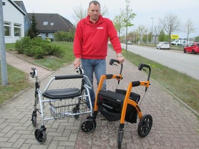 Wer indes unterwegs ein wenig schwächelt, der kann den Rollz mit zwei Handgriffen so umbauen, dass er bequem als Stuhl zum Verschnaufen oder gar Rollstuhl zur Verfügung steht. Eine zweite Person kann dann denjenigen im Rollstuhl weiterschieben – pfiffig gemacht. „Es ist ein praktisches Teil für Individualisten, wird aber nicht von der Krankenkasse bezuschusst“, sagt Leyske. „Doch auch hiervon haben wir beim Rollatortag einige zum Angucken und Ausprobieren da.“