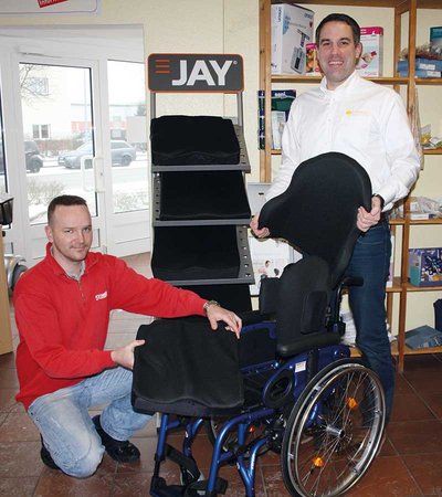 Für gewöhnlich sitzen Rollstuhlfahrer ein paar Stunden länger am Tag als andere. Umso wichtiger ist es für sie, auf die richtige Sitzposition zu achten. Schließlich können sich falsche Sitzgewohnheiten im Rollstuhl schnell negativ auf Muskeln, Bänder, Nerven, Bandscheiben und Knochen auswirken. „Manche sitzen mit ihren normalen Rollstuhlbespannungen im Rücken wie ein ‚Schluck Wasser‘ da. Die Stabilität ist einfach nicht vorhanden“, hat Torsten Zelck vom Sanitätshaus Kowsky schon mehrfach beobachtet. Wie gut, dass es Firmen gibt, die Rollstuhlfahrern den Rücken stärken. Sunrise Medical mit Sitz in Heidelberg ist ein solches innovatives Unternehmen, das seit vielen Jahren speziell durchdachte Rückensysteme auf den Markt bringt. „Unsere JAY Rücken sind feste Rücken, die sich leicht an nahezu alle Rollstuhlmodelle montieren lassen. Das Ganze dauert vielleicht zehn Minuten“, erklärt Helge Pillekamp, der für die Firma Sunrise Medical in Norddeutschland unterwegs ist. „JAY Rückensysteme wurden von uns entwickelt, um den Oberkörper sicher zu führen, Haltungsschäden zu vermeiden oder zu korrigieren. Durch die anatomisch gefertigten Stützen erfolgt eine verbesserte Druckverteilung und sie wirken der vorzeitigen Ermüdung des Rückens entgegen. Zudem werden Schmerzen reduziert und die Atmung verbessert. Leichte Materialien sorgen obendrein für ausreichend Luft-zirkulation.“ Es gibt die vorgefertigten Rückensysteme in verschiedenen Formen und Größen. Wird so ein JAY Rücken-Modell vom Arzt verordnet, übernimmt die Krankenkasse die Kosten. Torsten Zelck vom Sanitätshaus Kowsky ist froh, dass sein Sanitätshaus die JAY Rückensysteme anbietet. „Interessierte können jederzeit vorbeikommen und sie ausprobieren, nicht nur am Tag der offenen Tür im April. Die festen Rücken sind jedenfalls gut durchdacht“, lobt er. „Und sie tun gut. Schließlich empfindet jeder Sitzen und Sitzkomfort anders. Sitzen ist etwas ganz Individuelles. Wichtig dabei ist nur das Zusammenspiel zwischen Rollstuhl, Sitzkissen und Rücken im Auge zu behalten.“ Zugelassen sind JAY Rückensysteme übrigens auch für den Transport im Auto. Einmalig sind hierbei die Crash-Tests, die in Verbindung mit der Kopfstütze von der Firma Sunrise Medical durchgeführt wurden. Außerdem gibt es das wirbelsäulenfreundliche Hilfsmittel nicht nur für Erwachsene. Die festen Rücken sind auch im Kinderbereich einsetzbar. Hier sorgen sie für eine sichere Führung des Oberkörpers und eine stabile Sitzposition. Das wiederum verhilft vor allem jungen Rollstuhlfahrern zu mehr Bewegungsfreiheit und aktivem Freizeitspaß.