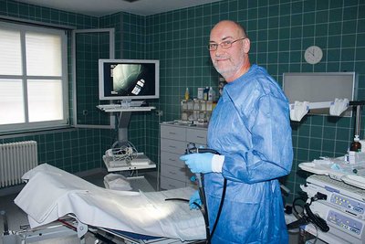 Darmkrebs ist in Deutschland die Krebsart, an der sowohl Frauen als auch Männer am zweithäufigsten erkranken. Ab dem 55. Geburtstag ist deshalb die Darmkrebsfrüherkennung eine von den Krankenkassen anerkannte Leistung, die bei unauffälligem Befund nur alle zehn Jahre wiederholt werden muss. Mit dem Koloskop, einem langen biegsamen Instrument, technisch mit Lichtquelle und Kamera ausgestattet, wird der etwa 1,5 Meter lange Dickdarm bei solch einer Spiegelung unter die Lupe genommen. Ein „Opfer“, das sich lohnt, bedenkt man, dass die Vorstufe des Krebses gutartige Polypen sind, die früh erkannt und entfernt werden können. Ein bisschen Wartezeit muss man zwar auch für den Vorsorge-Termin im Krankenhaus einplanen, mit durchschnittlich zwei Monaten sei es aber zur Zeit noch verträglich, versichert der Spezialist. Bei Beschwerden, die von Bauchschmerzen bis zu wechselndem Stuhlgang reichen können, wird die Untersuchung selbstverständlich kurzfristiger durchgeführt.