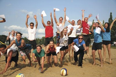 Teilnehmen dürfen sowohl Privat- als auch Firmen-Mannschaften. Zehn Beachvolleyballfelder stehen am 12. Juli zur Verfügung. Es gibt viel Trubel drum herum und Deftiges für Magen und Ohren.