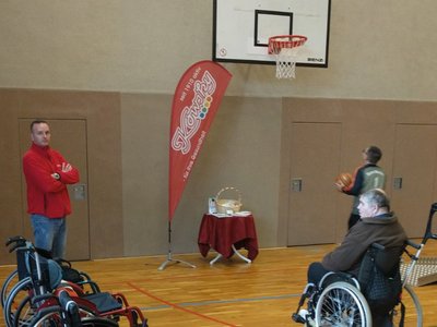 Sanitätshaus Kowsky. Mitarbeiter Torsten Zelck sagt: „Wir haben Aktivrollstühle bereit gestellt, auf denen sich die Teilnehmer bei einem Basketball-Parcours ausprobieren konnten. Obendrein hatten wir eine Rampe zum