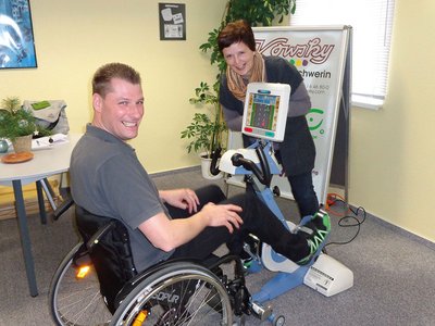Bewegung ist so wichtig wie das tägliche Brot. Daher werden Menschen in Reha-Kliniken oder Physiotherapie-Praxen so oft wie möglich an Trainingsgeräte gesetzt. Patienten mit neurologischen Erkrankungen, wie Parkinson, MS oder Schlaganfall, tun mit Hilfe des goldwerten THERA-Trainers etwas für ihre Durchblutung, Muskelkraft und beugen so der Versteifung ihrer Gelenke vor. Auch Menschen, die im Rollstuhl sitzen, können mit Hilfe dieses elektrischen Trainers etwas für ihre Koordination tun. Dennoch muss es nicht beim wöchentlichen Training in der Praxis bleiben. Die beste Wirkung erzielt derjenige, der jeden Tag etwas für seinen Körper tut. „Doch viele Betroffene wissen nicht, dass es diese Trainingsgeräte aus dem Reha-Bereich auch für zu Hause gibt“, weiß Konstanze Hülse vom Sanitätshaus Kowsky. „Beim Tag der offenen Tür sind die meisten oft ganz erstaunt. Dabei ist der THERA-Trainer für Menschen mit neurologischen Erkrankungen eine komplette Kassenleistung. Vorausgesetzt, das Gerät wird vorher erprobt.“ Doch die meisten merken schon nach kurzer Zeit, wie gut ihnen die tägliche Muskelarbeit tut. „Normalerweise ist es nämlich so, dass Menschen mit einer körperlichen Behinderung ihr natürliches Bedürfnis nach Bewegung oft nicht ausleben“, erklärt Mario Addicks, der für die Firma medica Medizintechnik als THERA-Trainer-Berater im norddeutschen Raum unterwegs ist. „Die Folge ist ein enormer Bewegungsmangel, der einen Teufelskreis in Gang setzt. Kraft, Beweglichkeit und Ausdauer schwinden, die Muskulatur bildet sich zurück. Dadurch werden alle Tätigkeiten des täglichen Lebens negativ beeinflusst, wie Hygiene, Anziehen Kochen und so weiter. Mit dem THERA-Trainer können die Betroffenen diesem Teufelskreis etwas entgegensetzen.“ Das Training selbst sei alles andere als langweilig. Durch einen Bildschirm und eine Software, die beispielsweise ein Autobahnprogramm beinhaltet, kann der Betroffene in seinem Rollstuhl imaginär auf einer Straße fahren. Es werden also nicht nur Muskeln aufgebaut, sondern auch gleichzeitig das Gehirn stimuliert.