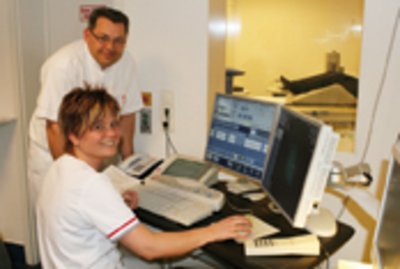 Dr. Zinck: „1991 schafften wir uns das erste CT-Gerät in der Stadt an, insgesamt flossen in Umbau und Technik ca. drei Millionen Euro.” Was damals mit fünf Mitarbeitern und Technik wie zum Beispiel einer alten Adler-Schreibmaschine begann, zeigt sich heute als hochmoderne Radiologiepraxis. Röntgenbilderstellung und -verarbeitung, Verwaltung und Abrechnung sind voll digitalisiert. Alle acht Jahre werden neue Großgeräte angeschafft. So steht in der Röntgenstraße eines der modernsten Mammografiegeräte, die es derzeit auf dem Markt gibt. „Ein weiteres Gerät dieser High- End-Klasse”, berichtet Dr. Zinck, „steht nur noch in der Berliner Charité.”