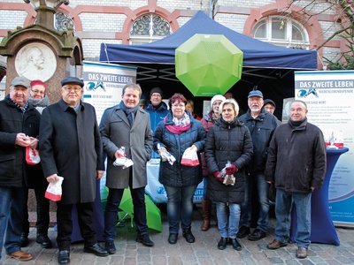 Die Mitglieder der Selbsthilfegruppe verteilen in diesem Jahr wieder kleine süße Herzen an die Passanten. Dabei werden sie unter anderem unterstützt von Henning Kutzbach, dem Landesgeschäftsführer der BARMER. Die Krankenkasse engagiert sich schon lange für das Thema Organspende.