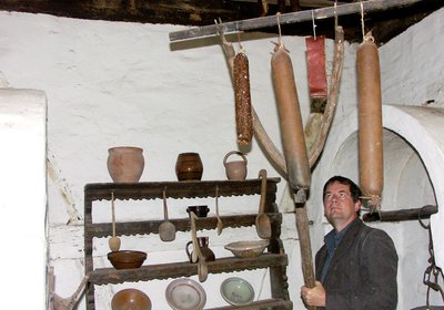 Noch heute sind in dem Haus viele Spuren der einstigen Bewohner zu finden. Da ist die Rille in der Schwelle zum Stall, die vom täglichen Gebrauch einer Schubkarre ohne Luftbereifung erzählt. Da sind die geschwärzten Deckenbohlen, die an das einstige Rauchhaus erinnern. Hier hängte man Wurst und Schinken unter die Decke, so dass der nach oben steigende Rauch das Fleisch einnebelte und haltbar machte. Einen Schornstein gab es nicht. „Der eigentlich lästige Rauch bot viele Vorteile: Er konservierte neben den Räucherwaren auch das Getreide, das im Haus lagerte, und hielt Ungeziefer und Holzwürmer fern“, erklärt Ethnologe Janke. Sogar die Redewendung „ins Fettnäpfchen treten“ stammt aus einem Rauchhaus: Unter den an der Decke hängenden Räucherwaren stellten die Bewohner Gefäße auf, um das herabtropfende Fett aufzufangen. Wer dort hinein trat, verdarb es sich mit der Hausfrau, die das Fett natürlich wie jedes andere Produkt der Landwirtschaft im Haushalt verwerten musste. Und so vermeidet es noch heute jeder gern, ins Fettnäpfchen zu treten - wenn auch nur im übertragenen Sinne.