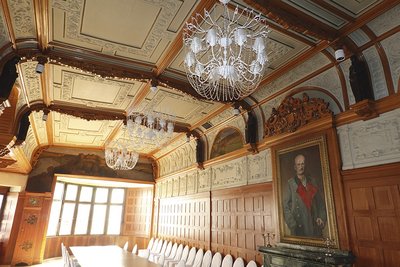 Festsaal für 80 Personen einbaute. Die bleiverglasten Fenster, holzgetäfelten Wände und schillernden Kronleuchter zeigen noch heute, warum der „Rittersaal“ zu den echten Sehenswürdigkeiten der Residenzstadt gehörte. Der gleiche Status kam auch dem Herz des Unternehmens – dem Weinkeller – zu. Mit ca. 4000 Quadratmetern Größe lagerten hier all die Mosel-, Rhein- und Bordeauxweine, für die Uhle bei seinen Kunden berühmt war. Der Platz in den Kellern wurde auch an anderen Orten in der Stadt immer weiter aufgestockt und war schließlich so üppig, dass hier rund eine Million Flaschen und bis zu 900.000 Liter Wein in Fässern Platz fanden. Wer aber trank nun diesen ganzen Wein? Zum Kundenstamm von Uhle gehörten fast alle mecklenburgischen Adelsfamilien und natürlich tranken auch die Schweriner Bürger und Bohemiens ordentlich mit. Der Schriftsteller Heinrich Seidel jedenfalls erwähnt den „Uhlenhorst“ gleich mehrfach in seinen Werken. Und auch der allerhöchsten Aufmerksamkeitkonnte sich Uhle gewiss sein: Als1906 das Weinrestaurant im neuen Gebäude eingeweiht wurde, war kein Geringerer als Großherzog Friedrich Franz IV. dabei.
