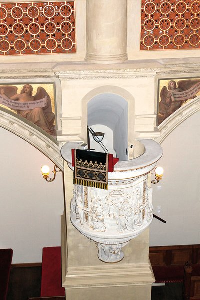 Die Kanzel, vom Torgauer Bildhauer Georg Schröter aus einem Sandsteinblock gehauen, zeigt Szenen aus dem neuen Testament und gehört ebenfalls zu den bedeutenden Einzelkunstwerken. Wie alle Sandsteinelemente der Kirche wurde sie bei der Sanierung gründlich gereinigt. Die Erneuerung des Putzes und der Brüstungselemente aus Terrakotta, eine neue Schutzverglasung für die Kirchenfenster und die moderne Heizung sind weitere Details der Sanierung, die aus der Schlosskirche wieder ein Schmuckstück gemacht hat. Nähere Informationen zu Besichtigungen gibt es auf