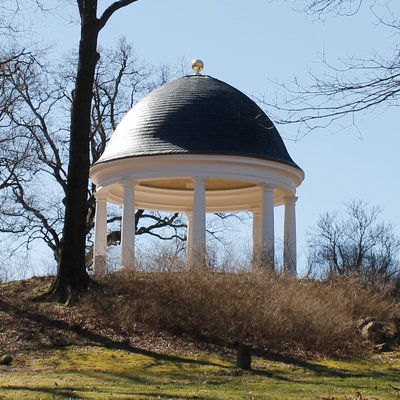 17. Juni 1836 das Aussehen des kleinen Tempels und des umliegenden Gartens beschrieb. „Ergreifend schön und erhaben zugleich“ sei die Rundsicht vom offenen Pavillon, der vom Fuße der Anhöhe einen freundlichen Anblick biete. Damit ist die wichtigste Aufgabe der kleinen Rotunde bereits genannt: schön sein. Im 19. Jahrhundert entstanden zahlreiche Landschaftsparks im englischen Stil, die das Ideal eines „begehbaren Landschaftsgemäldes“ zum Ziel hatten. Und was könnte so ein Bild schöner machen als ein malerischer Tempel? Kein Wunder, dass die kleinen Pavillons regelrecht in Mode kamen – einer der bekanntesten steht im Englischen Garten in München.
