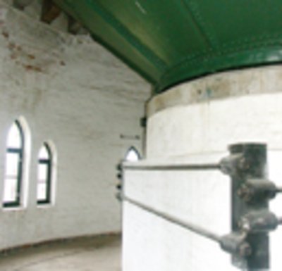 Der gewaltige Wassertank besteht aus genieteten Stahlteilen. Zusammengesetzt formen sie einen Koloss, der den ganzen oberen Teil des 22,5 Meter hohen Turms ausfüllt. Das Fundament des Bauwerks muss deshalb extrem belastbar sein. Denn zu dem schweren Behälter kommt das Gewicht des Wassers: Ein Kubikmeter besteht aus 1000 Litern und wiegt eine Tonne, 350 Kubikmeter passen - wie bereits erwähnt - in das Speicherbecken. „Da der Wasserspiegel im Innern des Behälters kontinuierlich steigt und sinkt, muss die Konstruktion auch ständig wechselnde Drücke aushalten“, erklärt Jürgen Deter, der seit 1972 in der Wasserversorgung der Stadt tätig ist. Bis zu seinem Eintritt in den Vorruhestand vor zwei Jahren war er technischer Leiter bei der Wasserversorgungs- und Abwasserentsorgungsgesellschaft Schwerin, in deren Eigentum sich der Turm befindet. Das Bauwerk ist nämlich mehr als ein technisches Denkmal: Noch heute ist der Speicher im Neumühler Wasserturm als Druckausgleichsbehälter ins Wasserversorgungsnetz der Stadt eingebunden.