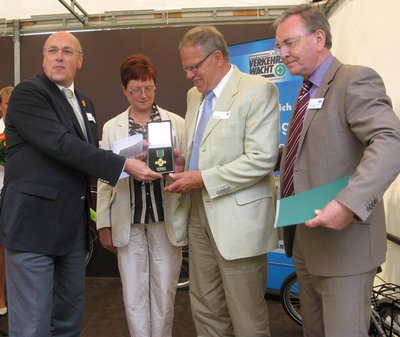 „Das Engagement der Landesverkehrswacht ist Engagement für das Leben. Seit 20 Jahren betätigt sich der Verein ehrenamtlich für die Verkehrssicherheit in Mecklenburg-Vorpommern und hat dadurch entscheidend zur Vermeidung von Unfällen beigetragen. Dafür sei Dank gesagt“, betonte der Präsident der DVW, Kurt Bodewig, in seinem Grußwort auf dem Sommerfest. Er überreichte dem langjährigen Vorsitzenden der Teterower Verkehrswacht Rüdiger Ilgen das Ehrenzeichen der DVW in Gold. Zugleich bedankten sich Bodewig und Hacker auch bei Ehefrau Margret Ilgen, die das Engagement ihres Mannes stets unterstützte.