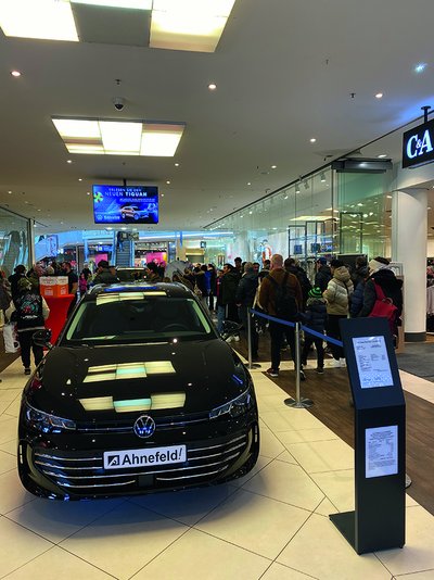 Fürs neue Auto ins Einkaufszentrum – das geht! Bei den Tiguan Fandays in der Marienplatz-Galerie stellte das Team des Autohauses Ahnefeld das neue Modell vor. Dazu kamen weitere Fahrzeuge, die Besucher hier aus der Nähe betrachten konnten. Mit Preisen am Glücksrad und Kinderschminken wurde es eine Veranstaltung für die ganze Familie.