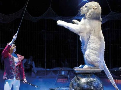 Eine wahrhaft tierische Sensation: Der Tierlehrer Hans Ludwig Suppmeier präsentiert dem Publikum mit vier Golden Tabby Tigern und einem weißen Tiger eine artgerechte Dressur. Direktor Reinhard Probst zeigt eine tierische Weltreise mit Zebras, Watussi-Rindern, Kamelen, Lamas und vielen weiteren Tieren.