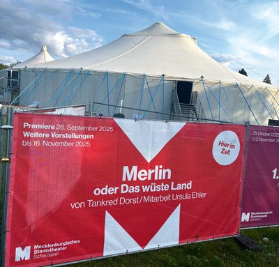 Spielzeiteröffnung im Mecklenburgischen Staatstheater mit König Artus, dem Gral und der Tafelrunde. Die sagenumwobene Welt um Merlin, den wohl berühmtesten Zauberer der europäischen Mythologie, ist reich an unsterblichen Figuren, Phantasie und legendären Abenteuern. Und noch immer strahlt sie bis in die Gegenwart, mit Fragen von bestechender Aktualität. Denn Merlins Welt liegt im Krieg und der weise Zauberer soll nach dem Willen des Teufels die Menschen vollends zum Bösen verführen. Doch er widersetzt sich und gründet zusammen mit dem jungen König Artus die Tafelrunde, ein Symbolbild der Zivilisation und Demokratie.