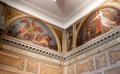 Porträts finden sich übrigens auch im Sagenzimmer. Rudolf Elster stellte in den Lücken zwischen den Szenen die historischen Dichter dar. Walter von der Vogelweide findet sich da ebenso wie Wolfram von Eschenbach, Gottfried von Straßburg und Hartmann von der Aue. Er malte die Herren so, wie sie ausgesehen haben könnten und wie er sie sich vorstellte. Wer im Sagenzimmer genau hinschaut, entdeckt sie.