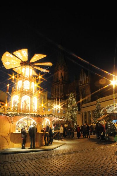 Die Pyramide erhellt wie in jedem Jahr den Marktplatz, auf dem Schlachtermarkt spielt die Eisbärenband auf Knopfdruck zum Tanz auf, der Weihnachtsmann hält seine Sprechstunde ab, am Pfaffenteich wird trotz Plusgraden Eis gelaufen oder eine Runde auf dem bunt beleuchteten Riesenrad gedreht.