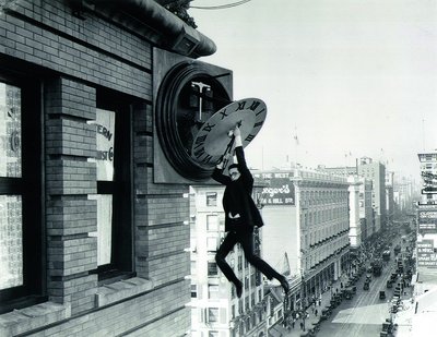 Theater und Kino im Doppelpack – das ist seit Jahren ein Erfolgsrezept des Filmkunstfests. Nach Charlie Chaplin ist es diesmal Harold Lloyd, neben Chaplin und Buster Keaton einer der erfolgreichsten Stummfilmstars, der das Publikum über 75 Minuten in Atem hält. „Er ist der Tom Cruise des Stummfilmkinos“, sagt Festivaldirektor Kufahl über Lloyd, der die meisten Stunts selbst übernahm – auch wenn er einige Jahre zuvor schon einmal bei Dreharbeiten zwei Finger der rechten Hand eingebüßt hatte. Und während die Fassadenkletterei in den 1920er Jahren noch zu Ohnmachtsanfällen im Publikum führte, sind es heute vor allem die ikonisch gewordenen Bilder, die begeistern: der Mensch, hängend an der Uhr, gefangen im Räderwerk der Zeit.