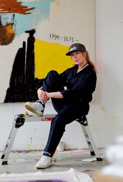 Sie verwendet zum Beispiel Neonfarben genauso wie Olivenöl und Schmutzpartikel. Sie kritzelt, zerkratzt, verwischt und übermalt. Dieser Prozess scheint ihr ebenso wichtig zu sein wie das fertige Werk. Am Ende heißt es für die Künstlerin oft: Weniger ist mehr: Manchmal sind die aufgetragenen Flüssigkeiten und Pigmente nur noch spurenhaft auf den Gemälden erkennbar.