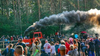 Das Spektakel beginnt traditionell mit dem Lkw-Pulling. Für alle Nicht-Insider: Dabei wird ein Bremswagen an das Fahrzeug angehängt, mit dem der Fahrer auf der Wettkampfbahn eine möglichst lange Strecke bewältigen muss. Nur ordentlich Gas zu geben, hilft aber nur bedingt. Je weiter ein Traktor mit dem Bremswagen fährt, umso schwerer lässt sich dieser ziehen, weil sich der Schwerpunkt verändert. Viel hängt also auch von der Geschicklichkeit des Fahrers ab – genauso wie von der Stärke des Fahrzeugs. Das verspricht einen aufregenden Wettkampf, bei dem Besucher entlang der Strecke zusehen können.