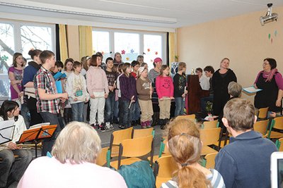 Viel Aufregung und vor allem Freude sah man in den Gesichtern der Schüler, der Musiklehrer und der Lehrer des Konservatoriums, als am 20. März im Sonderpädagogischen Förderzentrum „Am Fernsehturm“ zum 1. Mal die Flötengruppe, die Blechbläser und der Schulchor „Die Fernsehturmspatzen“ gemeinsam zu einem Frühlingskonzert eingeladen hatten. Eltern, Schüler, Erzieher, Lehrer und Sponsoren waren zahlreich erschienen. Das Sky Service Center übermittelte der Schule bei dieser Gelegenheit eine großzügige Spende, um weiterhin die musische