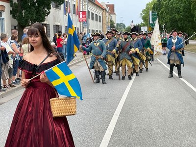 Wie jedes Jahr werden schwedische Truppen auf dem Markt lagern und in zeitgenössischen Kostümen Geschichte zum Leben erwecken. Mit dabei ist zum Beispiel der Verein Bohus Elfsborghs Caroliner. Die militärhistorische Gruppe stellt die Geschichte der Karoliner dar, die im 17. Jahrhundert die Stadt Göteburg und deren Festung sicherten. Mit ihnen ist auch die Königliche Leibgarde aus Stockholm vertreten, die zum Beispiel eine Wachablösung zeigen wird.