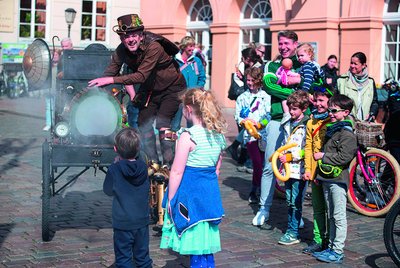 Ab dem Mittag lockt am Sonnabend ein abwechslungsreiches Programm für Groß und Klein in die Schweriner Altstadt rund um den Markt. Neben nonverbalem Zirkustheater und eindrucksvoller Hand-auf-Hand-Akrobatik vom Artistik-Duo elabö, einem Illustrationsautomaten und einer Sesselreise um die Welt sowie verschiedenen Walking-Acts spielt viel Musik. So unterhalten die Schweriner Klönköpp mit maritimen Liedern, Ensembles des Konservatoriums sowie der Musik- und Kunstschule Ataraxia treten im Taschengarten auf, die Ataraxia-Bigband AtaXoundZ spielt am Pfaffenteich und von den Swingbop‘ers aus Berlin gibt es das Beste der Swing-Musik der 20er bis 50er Jahre. Wer Lust bekommt mitzusingen, hat dazu um 15 Uhr auf dem Marktplatz Gelegenheit. Dann wird unter dem Motto „Schwerin singt!“ zum gemeinsamen Frühlingslieder-Singen mit dem Theodor-Körner-Chor geladen. Genießen lässt sich das bunte Treiben in Liegestühlen, mitten auf dem Markt bei einer kulinarischen Stärkung oder mit einer Erfrischung in der „Außenbar“ vom Weinhaus Wöhler.