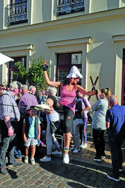 Bei schönstem Spätsommerwetter wurde Ende September wieder ein Münzstraßenfest gefeiert. Zum Programm zählten Live-Musik und Kleinkunstauftritte, unter anderem von Seiltänzerin Lisa Wilke (oben) und Lemmi Lembcke.