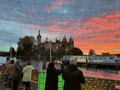 Am 12. Dezember ist die klingende Karawane dann um 19 Uhr bei der Flotten Weihnacht am Schlossanleger der Weißen Flotte zu Gast. Hier liegt das Glühschiff vor Anker – und damit gibt es einen Platz fürs anschließende gemütliche Zusammensein. Der Salon des Schiffs kann zum Aufwärmen genutzt werden, dazu gibt es vom Steg einen spektakulären Schlossblick als Zugabe zum Glühwein.