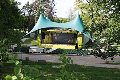 Die Ensembles treten einzeln und gemeinsam auf, dazwischen gibt es Pausen, in denen Besucher ihre Picknickkörbe wieder auffüllen können. Picknick im Schlossgarten? Genau! Denn Picknicken ist an diesem Tag ausdrücklich erwünscht: Zum großen „Picknick im Park“ können Besucher ihre Essen, Trinken, gemütliche Decken oder Sitzgelegenheiten mitbringen und sich auch vor Ort, am Bertha-Klingberg-Platz, mit diversen leckeren Kleinigkeiten versorgen. So verschmelzen gleich mehrere Genüsse zu einem einmaligen Erlebnis. Besucher des Jugendsinfonieorchester-Festivals sollten sich außerdem nicht wundern, wenn sie auf Damen im Reifrock und Herren in schneidiger Uniform treffen: Mitglieder des Vereins der Freunde des Schweriner Schlosses in historischen Kostümen werden anlässlich des Picknicks im Park historisches Flair in den Schlossgarten bringen. Gleichzeitig werben sie für ein Projekt, das ihnen sehr am Herzen liegt: den Wiederaufbau des Jugendtempels. Dieser Rundtempel, ein so genannter Monopteros, wurde 1821 von dem Architekten Georg Barca entworfen und 1824 fertiggestellt. Er stand auf einem natürlichen Hügel im südlichen, landschaftlichen Areal des Schlossgartens in unmittelbarer Nähe zum Schleifmühlenweg und war ein wesentliches Gestaltungsmerkmal dieses Teils des Parkes.
