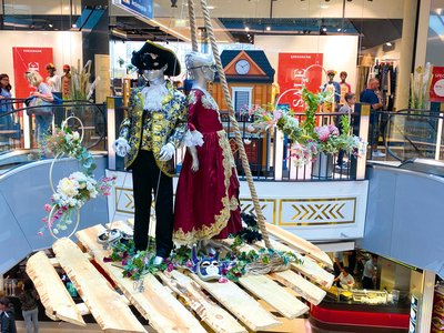 Die Venezianischen Tage sind eröffnet – zumindest, was die Dekoration in der Marienplatz-Galerie betrifft. Dort hat der der Maskenball bereits begonnen, schwebt eine Gondel und entfaltet sich die ganze Magie von Venedig. Fotos machen außerdem Lust auf die prächtigen Kostüme, die zwischen dem 19. und 21. September in Schwerin zu sehen sein werden.