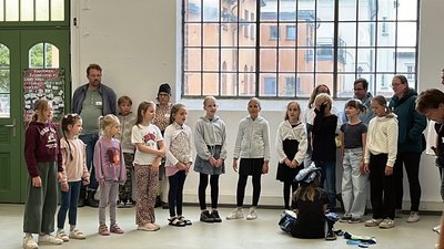 Improvisation, Phantasie und eigene Ausdrucksformen standen im Mittelpunkt eines dreitägigen Workshops im E-Werk –inspiriert von den dort gezeigten Arbeiten der britischen Künstlerin Emily Jones. Unter der Leitung von Theaterpädagogin Tina Koball erarbeiteten die Grundschulkinder eigene Szenen, die sie zum Abschluss der drei Tage ihren Eltern präsentierten. Auch die Zuschauer wurden dabei Teil der Aufführung und durften wieder Kind sein: Vor dem Gebäude waren sie aufgefordert, Hula-Hoop-Reifen zu schwingen und Gummitwist zu springen. Im E-Werk wurde der gesamte Ausstellungsraum zur Bühne – eine eindrucksvolle Symbiose aus Kunst und Theater, von Kindern spielerisch in Szene gesetzt.