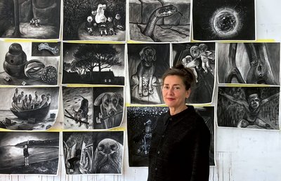 Die Ausstellung mit diesem Titel zeigt Arbeiten von Anke Feuchtenberger, einer in der Comic-Szene gefeierten Künstlerin. Ob im Centre Pompidou in Paris, im Museo d‘ Arte in Ravenna, Galerien in Kyoto und Helsinki, auf dem Comic-Festival in Angoulême oder der Leipziger Buchmesse – die gebürtige Berlinerin ist mit ihren Zeichnungen und grafischen Erzählungen seit Jahren auf internationalem Parkett unterwegs.