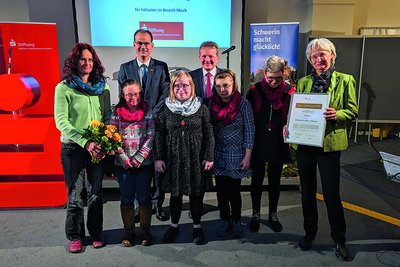 Das Ensemble „KONtegra“ des Konservatoriums Schwerin ist offen für alle, die gemeinsam musizieren wollen, unabhängig von Alter, Herkunft, Sprache oder musikalischen Fähigkeiten. Seit mehr als 20 Jahren steht es unter der Leitung von Friederike Steinberg. Für ihr Engagement bei der Inklusion im Bereich Musik gab es die Ehrung. Auch an die Band „Kaktus“ des Konservatoriums wurde eine Auszeichnung im Bereich Inklusion vergeben. Die Band probt eigene Titel und Titel anderer Musiker – und das Ergebnis überzeugt zu 100 Prozent. Ziel ist es, die Ensemblemitglieder zu immer mehr musikalischer Selbstständigkeit zu führen und musikalisch weiterzuentwickeln.