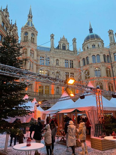 Atmosphäre, Kultur, Kulinarisches: Das ist das Rezept der Höfischen Weihnacht im Schlossinnenhof. Auch im Dezember 2023 soll es wieder einen Weihnachtsmarkt an dieser Stelle geben –