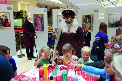 Was für ein Wochenende: Die ersten Venezianischen Tage in Schwerin waren ein voller Erfolg – und die Marienplatz-Galerie war mittendrin. Besonders beliebt: das Basteln einer eigenen Maske nach venezianischem Vorbild. Den Auftakt machten am Donnerstag Mädchen und Jungen aus der Kita „Schlossgeister“ – und danach riss der Strom der Kreativen im Untergeschoss nicht mehr ab. Kleine und Große gaben sich die Pinsel in die Hand, so dass am Ende alle Maskenrohlinge bemalt waren. Viele der individuellen Stücke wurden im Anschluss gleich ausgeführt – zur Lesung mit Annett Renneberg am Donnerstagabend genauso wie zu den bunten Umzügen mit den Kostümträgern in der Altstadt.