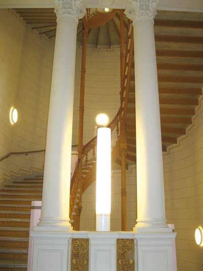 Der „Wackelpudding-Untergrund“ der Schlossinsel ist auch ein Grund, weshalb bei der Ausstattung leichte Materialien eingesetzt wurden. Natürlich spielte bei mancher optischen Täuschung auch der schma-le Geldbeutel des Großherzogs eine Rolle. Viele prächtige Marmorsäulen sind nur Imitate, die ihr Aussehen mit Hilfe der Stuccolustro-Technik erhielten.