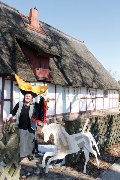 Und nun: Puppentheater! Zweimal im Monat, jeweils in der Mitte, am Mittwoch und Sonnabend, spielt Margrit Wischnewski ihre aktuellsten und beliebtesten Inszenierungen. Unter der Telefonnummer 0385-77886895 können sich Gruppen ab 25 Personen auch für zusätzliche Aufführungen anmelden – Erwachsene sind ebenso willkommen wie Kinder. Natürlich macht es Margrit Wischnewski besonders viel Spaß, die jüngsten Besucher zum Staunen zu bringen. Und – da steckt einfach die Lehrerin in ihr – sie auch ein bisschen schlauer zu machen. Der neue Spielort Kinningshus kommt ihr bei dem Wunsch entgegen, den Mädchen und Jungen auch Geschichte zu den Geschichten zu vermitteln. Viele Kinder, sagt Magrit Wischnewski, kennen einen Kuhstall nur noch aus dem Fernsehen. Es ist ihnen neu, dass sich Mensch und Tier oft ein Haus teilten, die Hühner manchmal auch über den Flur flitzten und Wolle erst zum Faden gesponnen werden musste. Die Puppenspielerin merkt das, wenn sie ihr Dornröslein zur Aufführung bringt: So mancher der kleinen Zuschauer kann mit dem Begriff „Spindel“ gar nichts anfangen. Deshalb erzählt Margrit Wischnewski auch die Alltagsgeschichten aus den Märchen: Den Bremer Stadtmusikanten wird übel mitgespielt, weil unnütze Nutztiere im bäuerlichen Alltag eine Last waren und ein dritter Sohn, der kein Land, sondern einen Kater erbt, hatte vom Leben nicht viel zu erwarten. „Es war einmal“ bekommt so eine ganz neue Dimension.