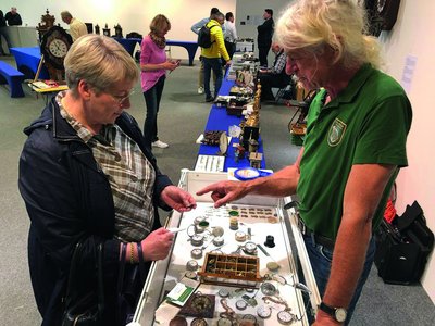 Sammler und Aussteller aus ganz Deutschland treffen sich an diesem Tag in der Schweriner Marienplatz-Galerie. Es ist eine Gelegenheit zum Austausch, aber auch zum Schauen und Staunen, denn die Uhrenbörse richtet sich nicht nur an ein Fachpublikum – hier sind alle willkommen. Gern erläutern die Sammler den Besuchern die Finessen mechanischer Kostbarkeiten.