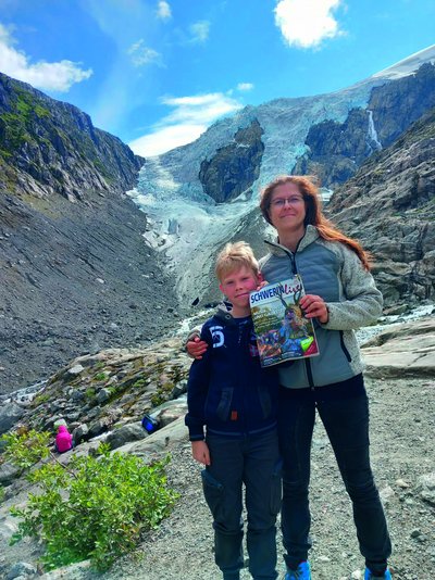Dementsprechend gro. war die Anzahl der Einsendungen und noch größer die Freude der Redaktion über die rege Beteiligung und natürlich die Reiselust unserer Leser – eine kleine Auswahl von Fotos gibt es auf dieser Seite. Klar, dass die Wahl des Gewinner- Schnappschusses unserer Jury ziemlich schwerfiel. Letztendlich fiel die Entscheidung für das Bild von Jana Strampe. Bevor sie sich zu einer zweistündigen Wanderung zur Gletscherzunge Buarbreen des Folgefonna-Gletschers in Norwegen aufmachte, packte sie Schwerin live in den Rucksack. Das hat sich gelohnt. Wir gratulieren zum Reisegutschein im Wert von 300 Euro! Und wer weiß – vielleicht schleicht sich ja auch im nächsten Sommer wieder eine Ausgabe der Schwerin live mit ins Handgepäck.
